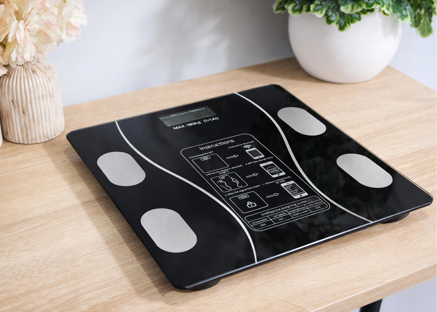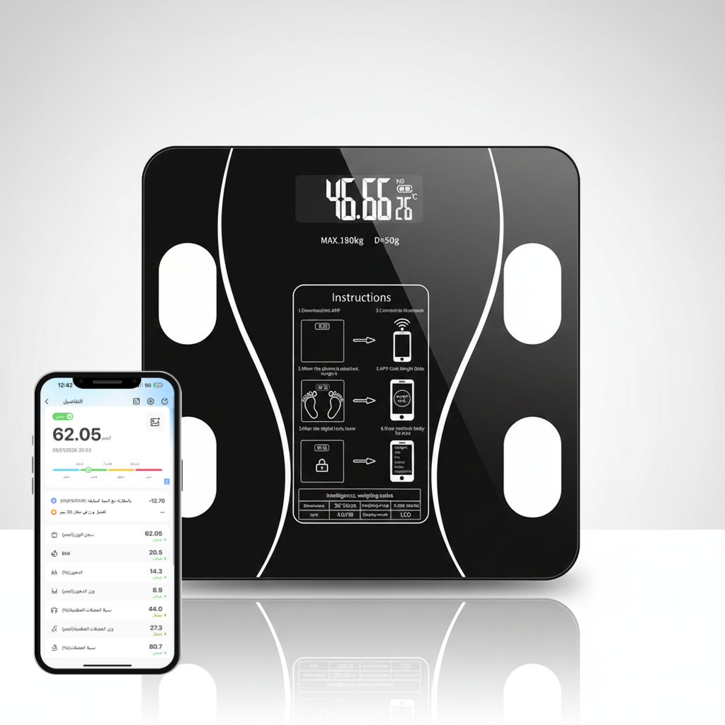 هذا الميزان الذكي يربط مباشرة مع هاتفك عبر البلوتوث ويعطيك معلومات دقيقة تخليك دايمًا متابع وزنك وتطور جسمك بكل سهولة